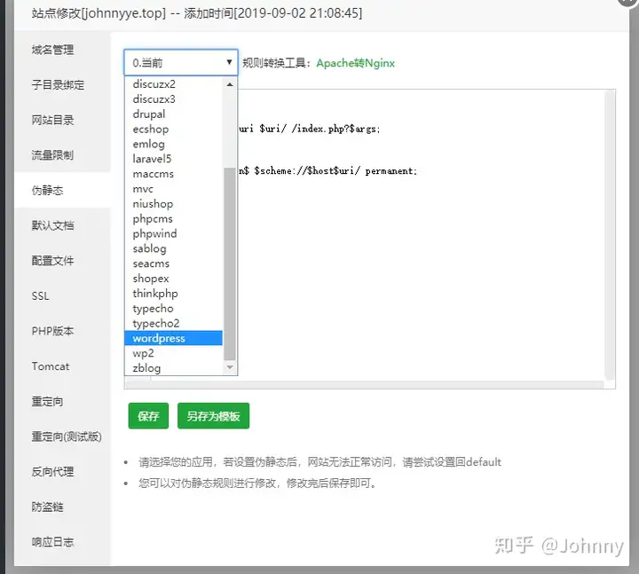 最近重新部署wordpress的时候发现,原来宝塔面板早就自带了很多网站的伪静态规则,因此我们只需要部署好后去设置就好了